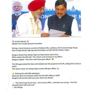 Through Motivational Sessions, Wellness Programs, and Sahaja Yoga Meditation, Banga Gurmeet Singh invites you to experience the beauty of inner balance and spiritual awakening.